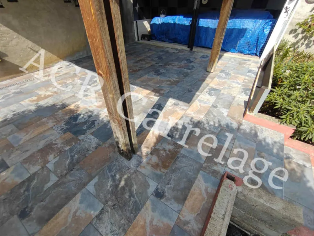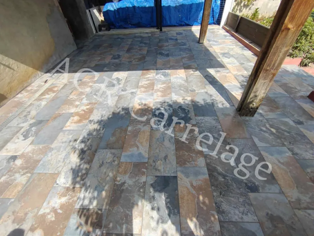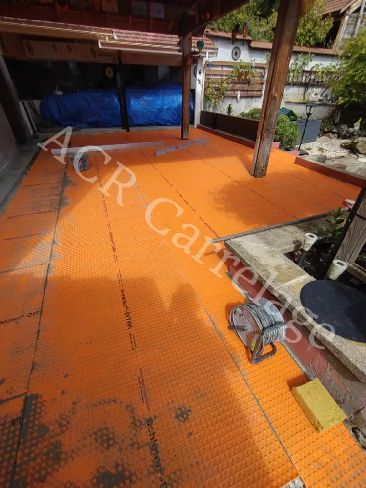 Rénovation d'une terrasse avec rattrapage des pentes et pose d'une natte par l'entreprise acr carrelage
